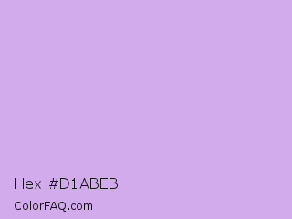 Hex #d1abeb Color is a light purple color and the nearest color is Bright Ube #d19fe8. Hex code #d1abeb and RGB value is rgb(209,171,235). In RGB color space, this color is composed of 82% red, 67% green, 92% blue, In CMYK color space, this color is composed of 11% cyan, 27% magenta, 0% yellow , 8% black , In HSL color space, this color has a hue angle of 276° , 62% saturation and 80% lightness.