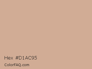 Hex #d1ac95 Color is a light orange color and the nearest color is Rodeo Dust #c9b29b. Hex code #d1ac95 and RGB value is rgb(209,172,149). In RGB color space, this color is composed of 82% red, 67% green, 58% blue, In CMYK color space, this color is composed of 0% cyan, 18% magenta, 29% yellow , 18% black , In HSL color space, this color has a hue angle of 23° , 39% saturation and 70% lightness.
