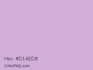Hex #d1aed8 Color is a light purple color and the nearest color is Pink Lavender #d8b2d1. Hex code #d1aed8 and RGB value is rgb(209,174,216). In RGB color space, this color is composed of 82% red, 68% green, 85% blue, In CMYK color space, this color is composed of 3% cyan, 19% magenta, 0% yellow , 15% black , In HSL color space, this color has a hue angle of 290° , 35% saturation and 76% lightness.