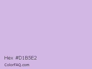 Hex #d1b5e2 Color is a light purple color and the nearest color is Prelude #d0c0e5. Hex code #d1b5e2 and RGB value is rgb(209,181,226). In RGB color space, this color is composed of 82% red, 71% green, 89% blue, In CMYK color space, this color is composed of 8% cyan, 20% magenta, 0% yellow , 11% black , In HSL color space, this color has a hue angle of 277° , 44% saturation and 80% lightness.