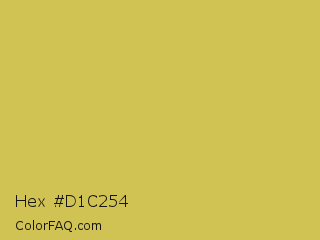 Hex #d1c254 Color is a normal yellow color and the nearest color is Tacha #d6c562. Hex code #d1c254 and RGB value is rgb(209,194,84). In RGB color space, this color is composed of 82% red, 76% green, 33% blue, In CMYK color space, this color is composed of 0% cyan, 7% magenta, 60% yellow , 18% black , In HSL color space, this color has a hue angle of 53° , 58% saturation and 57% lightness.
