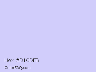 Hex #d1cdfb Color is a very light indigo color and the nearest color is Periwinkle #ccccff. Hex code #d1cdfb and RGB value is rgb(209,205,251). In RGB color space, this color is composed of 82% red, 80% green, 98% blue, In CMYK color space, this color is composed of 17% cyan, 18% magenta, 0% yellow , 2% black , In HSL color space, this color has a hue angle of 245° , 85% saturation and 89% lightness.