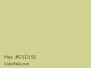 Hex #d1d191 Color is a light yellow color and the nearest color is Winter Hazel #d5d195. Hex code #d1d191 and RGB value is rgb(209,209,145). In RGB color space, this color is composed of 82% red, 82% green, 57% blue, In CMYK color space, this color is composed of 0% cyan, 0% magenta, 31% yellow , 18% black , In HSL color space, this color has a hue angle of 60° , 41% saturation and 69% lightness.