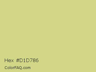 Hex #d1d786 Color is a light yellow color and the nearest color is Medium Spring Bud #c9dc87. Hex code #d1d786 and RGB value is rgb(209,215,134). In RGB color space, this color is composed of 82% red, 84% green, 53% blue, In CMYK color space, this color is composed of 3% cyan, 0% magenta, 38% yellow , 16% black , In HSL color space, this color has a hue angle of 64° , 50% saturation and 68% lightness.