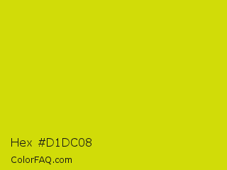 Hex #d1dc08 Color is a normal yellow color and the nearest color is Bitter Lemon #cae00d. Hex code #d1dc08 and RGB value is rgb(209,220,8). In RGB color space, this color is composed of 82% red, 86% green, 3% blue, In CMYK color space, this color is composed of 5% cyan, 0% magenta, 96% yellow , 14% black , In HSL color space, this color has a hue angle of 63° , 93% saturation and 45% lightness.