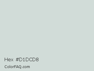 Hex #d1dcd8 Color is a very light green color and the nearest color is Iron #d4d7d9. Hex code #d1dcd8 and RGB value is rgb(209,220,216). In RGB color space, this color is composed of 82% red, 86% green, 85% blue, In CMYK color space, this color is composed of 5% cyan, 0% magenta, 2% yellow , 14% black , In HSL color space, this color has a hue angle of 158° , 14% saturation and 84% lightness.