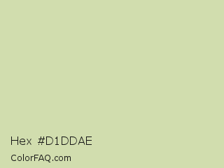 Hex #d1ddae Color is a light lime color and the nearest color is Green Mist #cbd3b0. Hex code #d1ddae and RGB value is rgb(209,221,174). In RGB color space, this color is composed of 82% red, 87% green, 68% blue, In CMYK color space, this color is composed of 5% cyan, 0% magenta, 21% yellow , 13% black , In HSL color space, this color has a hue angle of 75° , 41% saturation and 77% lightness.