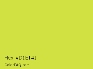 Hex #d1e141 Color is a normal yellow color and the nearest color is Wattle #dcd747. Hex code #d1e141 and RGB value is rgb(209,225,65). In RGB color space, this color is composed of 82% red, 88% green, 25% blue, In CMYK color space, this color is composed of 7% cyan, 0% magenta, 71% yellow , 12% black , In HSL color space, this color has a hue angle of 66° , 73% saturation and 57% lightness.