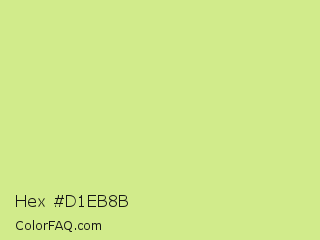 Hex #d1eb8b Color is a light lime color and the nearest color is Medium Spring Bud #c9dc87. Hex code #d1eb8b and RGB value is rgb(209,235,139). In RGB color space, this color is composed of 82% red, 92% green, 55% blue, In CMYK color space, this color is composed of 11% cyan, 0% magenta, 41% yellow , 8% black , In HSL color space, this color has a hue angle of 76° , 71% saturation and 73% lightness.
