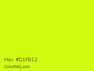 Hex #d1fb12 Color is a normal lime color and the nearest color is Arctic Lime #d0ff14. Hex code #d1fb12 and RGB value is rgb(209,251,18). In RGB color space, this color is composed of 82% red, 98% green, 7% blue, In CMYK color space, this color is composed of 17% cyan, 0% magenta, 93% yellow , 2% black , In HSL color space, this color has a hue angle of 71° , 97% saturation and 53% lightness.