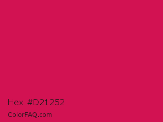 Hex #d21252 Color is a normal rose color and the nearest color is Debian Red #d70a53. Hex code #d21252 and RGB value is rgb(210,18,82). In RGB color space, this color is composed of 82% red, 7% green, 32% blue, In CMYK color space, this color is composed of 0% cyan, 91% magenta, 61% yellow , 18% black , In HSL color space, this color has a hue angle of 340° , 84% saturation and 45% lightness.