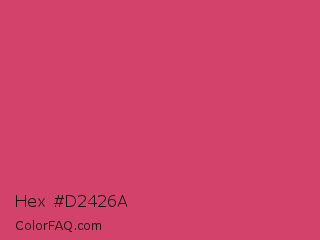 Hex #d2426a Color is a normal rose color and the nearest color is Cabaret #d94972. Hex code #d2426a and RGB value is rgb(210,66,106). In RGB color space, this color is composed of 82% red, 26% green, 42% blue, In CMYK color space, this color is composed of 0% cyan, 69% magenta, 50% yellow , 18% black , In HSL color space, this color has a hue angle of 343° , 62% saturation and 54% lightness.