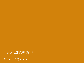 Hex #d2820b Color is a normal orange color and the nearest color is Meteor #d07d12. Hex code #d2820b and RGB value is rgb(210,130,11). In RGB color space, this color is composed of 82% red, 51% green, 4% blue, In CMYK color space, this color is composed of 0% cyan, 38% magenta, 95% yellow , 18% black , In HSL color space, this color has a hue angle of 36° , 90% saturation and 43% lightness.