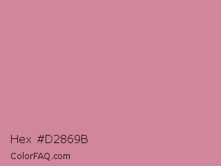 Hex #d2869b Color is a light rose color and the nearest color is Puce #cc8899. Hex code #d2869b and RGB value is rgb(210,134,155). In RGB color space, this color is composed of 82% red, 53% green, 61% blue, In CMYK color space, this color is composed of 0% cyan, 36% magenta, 26% yellow , 18% black , In HSL color space, this color has a hue angle of 343° , 46% saturation and 67% lightness.