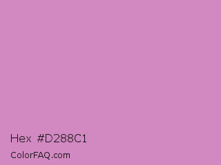 Hex #d288c1 Color is a light magenta color and the nearest color is Middle Purple #d982b5. Hex code #d288c1 and RGB value is rgb(210,136,193). In RGB color space, this color is composed of 82% red, 53% green, 76% blue, In CMYK color space, this color is composed of 0% cyan, 35% magenta, 8% yellow , 18% black , In HSL color space, this color has a hue angle of 314° , 45% saturation and 68% lightness.