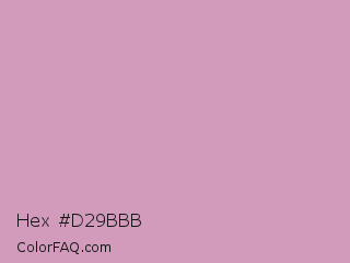 Hex #d29bbb Color is a light magenta color and the nearest color is Pastel Violet #cb99c9. Hex code #d29bbb and RGB value is rgb(210,155,187). In RGB color space, this color is composed of 82% red, 61% green, 73% blue, In CMYK color space, this color is composed of 0% cyan, 26% magenta, 11% yellow , 18% black , In HSL color space, this color has a hue angle of 325° , 38% saturation and 72% lightness.