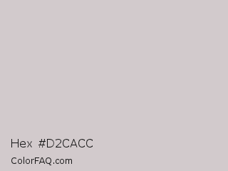 Hex #d2cacc Color is a very light red color and the nearest color is Swirl #d3cdc5. Hex code #d2cacc and RGB value is rgb(210,202,204). In RGB color space, this color is composed of 82% red, 79% green, 80% blue, In CMYK color space, this color is composed of 0% cyan, 4% magenta, 3% yellow , 18% black , In HSL color space, this color has a hue angle of 345° , 8% saturation and 81% lightness.