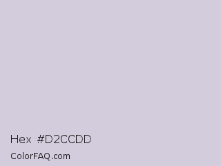 Hex #d2ccdd Color is a very light violet color and the nearest color is Languid Lavender #d6cadd. Hex code #d2ccdd and RGB value is rgb(210,204,221). In RGB color space, this color is composed of 82% red, 80% green, 87% blue, In CMYK color space, this color is composed of 5% cyan, 8% magenta, 0% yellow , 13% black , In HSL color space, this color has a hue angle of 261° , 20% saturation and 83% lightness.