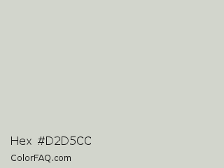 Hex #d2d5cc Color is a very light green color and the nearest color is Celeste #d1d2ca. Hex code #d2d5cc and RGB value is rgb(210,213,204). In RGB color space, this color is composed of 82% red, 84% green, 80% blue, In CMYK color space, this color is composed of 1% cyan, 0% magenta, 4% yellow , 16% black , In HSL color space, this color has a hue angle of 80° , 10% saturation and 82% lightness.