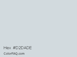 Hex #d2dade Color is a very light blue color and the nearest color is Iron #d4d7d9. Hex code #d2dade and RGB value is rgb(210,218,222). In RGB color space, this color is composed of 82% red, 85% green, 87% blue, In CMYK color space, this color is composed of 5% cyan, 2% magenta, 0% yellow , 13% black , In HSL color space, this color has a hue angle of 200° , 15% saturation and 85% lightness.