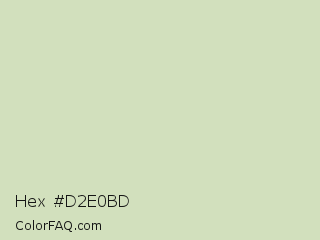 Hex #d2e0bd Color is a very light green color and the nearest color is Tana #d9dcc1. Hex code #d2e0bd and RGB value is rgb(210,224,189). In RGB color space, this color is composed of 82% red, 88% green, 74% blue, In CMYK color space, this color is composed of 6% cyan, 0% magenta, 16% yellow , 12% black , In HSL color space, this color has a hue angle of 84° , 36% saturation and 81% lightness.