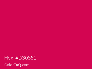 Hex #d30551 Color is a normal rose color and the nearest color is Debian Red #d70a53. Hex code #d30551 and RGB value is rgb(211,5,81). In RGB color space, this color is composed of 83% red, 2% green, 32% blue, In CMYK color space, this color is composed of 0% cyan, 98% magenta, 62% yellow , 17% black , In HSL color space, this color has a hue angle of 338° , 95% saturation and 42% lightness.