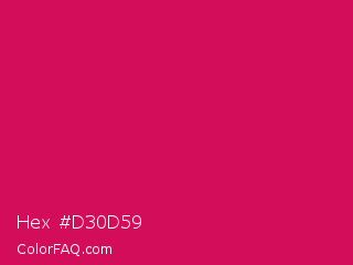 Hex #d30d59 Color is a normal rose color and the nearest color is Debian Red #d70a53. Hex code #d30d59 and RGB value is rgb(211,13,89). In RGB color space, this color is composed of 83% red, 5% green, 35% blue, In CMYK color space, this color is composed of 0% cyan, 94% magenta, 58% yellow , 17% black , In HSL color space, this color has a hue angle of 337° , 88% saturation and 44% lightness.
