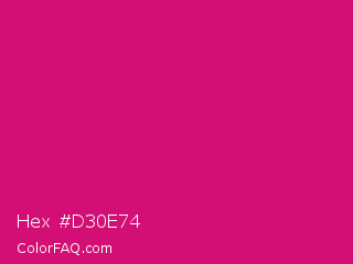 Hex #d30e74 Color is a normal rose color and the nearest color is Dogwood Rose #d71868. Hex code #d30e74 and RGB value is rgb(211,14,116). In RGB color space, this color is composed of 83% red, 5% green, 45% blue, In CMYK color space, this color is composed of 0% cyan, 93% magenta, 45% yellow , 17% black , In HSL color space, this color has a hue angle of 329° , 88% saturation and 44% lightness.