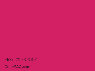 Hex #d32064 Color is a normal rose color and the nearest color is Dogwood Rose #d71868. Hex code #d32064 and RGB value is rgb(211,32,100). In RGB color space, this color is composed of 83% red, 13% green, 39% blue, In CMYK color space, this color is composed of 0% cyan, 85% magenta, 53% yellow , 17% black , In HSL color space, this color has a hue angle of 337° , 74% saturation and 48% lightness.