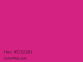 Hex #d32281 Color is a normal rose color and the nearest color is Vivid Cerise #da1d81. Hex code #d32281 and RGB value is rgb(211,34,129). In RGB color space, this color is composed of 83% red, 13% green, 51% blue, In CMYK color space, this color is composed of 0% cyan, 84% magenta, 39% yellow , 17% black , In HSL color space, this color has a hue angle of 328° , 72% saturation and 48% lightness.