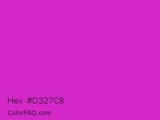 Hex #d327c8 Color is a normal magenta color and the nearest color is Steel Pink #cc33cc. Hex code #d327c8 and RGB value is rgb(211,39,200). In RGB color space, this color is composed of 83% red, 15% green, 78% blue, In CMYK color space, this color is composed of 0% cyan, 82% magenta, 5% yellow , 17% black , In HSL color space, this color has a hue angle of 304° , 69% saturation and 49% lightness.