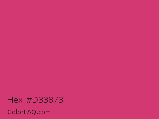 Hex #d33873 Color is a normal rose color and the nearest color is Telemagenta #cf3476. Hex code #d33873 and RGB value is rgb(211,56,115). In RGB color space, this color is composed of 83% red, 22% green, 45% blue, In CMYK color space, this color is composed of 0% cyan, 73% magenta, 45% yellow , 17% black , In HSL color space, this color has a hue angle of 337° , 64% saturation and 52% lightness.