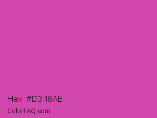 Hex #d348ae Color is a normal magenta color and the nearest color is Pink Pantone #d74894. Hex code #d348ae and RGB value is rgb(211,72,174). In RGB color space, this color is composed of 83% red, 28% green, 68% blue, In CMYK color space, this color is composed of 0% cyan, 66% magenta, 18% yellow , 17% black , In HSL color space, this color has a hue angle of 316° , 61% saturation and 55% lightness.
