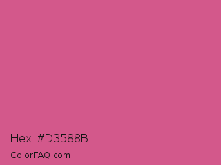 Hex #d3588b Color is a normal rose color and the nearest color is Mystic #d65282. Hex code #d3588b and RGB value is rgb(211,88,139). In RGB color space, this color is composed of 83% red, 35% green, 55% blue, In CMYK color space, this color is composed of 0% cyan, 58% magenta, 34% yellow , 17% black , In HSL color space, this color has a hue angle of 335° , 58% saturation and 59% lightness.