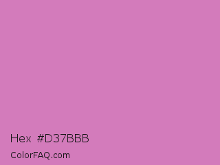 Hex #d37bbb Color is a light magenta color and the nearest color is Middle Purple #d982b5. Hex code #d37bbb and RGB value is rgb(211,123,187). In RGB color space, this color is composed of 83% red, 48% green, 73% blue, In CMYK color space, this color is composed of 0% cyan, 42% magenta, 11% yellow , 17% black , In HSL color space, this color has a hue angle of 316° , 50% saturation and 65% lightness.