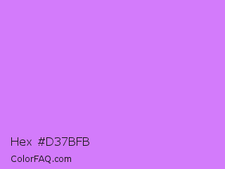 Hex #d37bfb Color is a light purple color and the nearest color is Heliotrope #df73ff. Hex code #d37bfb and RGB value is rgb(211,123,251). In RGB color space, this color is composed of 83% red, 48% green, 98% blue, In CMYK color space, this color is composed of 16% cyan, 51% magenta, 0% yellow , 2% black , In HSL color space, this color has a hue angle of 281° , 94% saturation and 73% lightness.