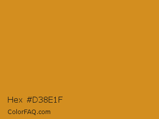 Hex #d38e1f Color is a normal orange color and the nearest color is Geebung #d18f1b. Hex code #d38e1f and RGB value is rgb(211,142,31). In RGB color space, this color is composed of 83% red, 56% green, 12% blue, In CMYK color space, this color is composed of 0% cyan, 33% magenta, 85% yellow , 17% black , In HSL color space, this color has a hue angle of 37° , 74% saturation and 47% lightness.