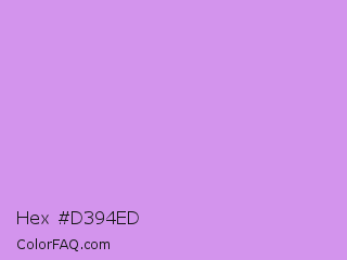 Hex #d394ed Color is a light purple color and the nearest color is Bright Lilac #d891ef. Hex code #d394ed and RGB value is rgb(211,148,237). In RGB color space, this color is composed of 83% red, 58% green, 93% blue, In CMYK color space, this color is composed of 11% cyan, 38% magenta, 0% yellow , 7% black , In HSL color space, this color has a hue angle of 282° , 71% saturation and 75% lightness.
