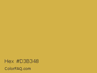 Hex #d3b348 Color is a normal yellow color and the nearest color is Turmeric #cabb48. Hex code #d3b348 and RGB value is rgb(211,179,72). In RGB color space, this color is composed of 83% red, 70% green, 28% blue, In CMYK color space, this color is composed of 0% cyan, 15% magenta, 66% yellow , 17% black , In HSL color space, this color has a hue angle of 46° , 61% saturation and 55% lightness.
