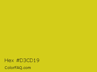 Hex #d3cd19 Color is a normal yellow color and the nearest color is Bird Flower #d4cd16. Hex code #d3cd19 and RGB value is rgb(211,205,25). In RGB color space, this color is composed of 83% red, 80% green, 10% blue, In CMYK color space, this color is composed of 0% cyan, 3% magenta, 88% yellow , 17% black , In HSL color space, this color has a hue angle of 58° , 79% saturation and 46% lightness.
