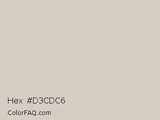 Hex #d3cdc6 Color is a light orange color and the nearest color is Swirl #d3cdc5. Hex code #d3cdc6 and RGB value is rgb(211,205,198). In RGB color space, this color is composed of 83% red, 80% green, 78% blue, In CMYK color space, this color is composed of 0% cyan, 3% magenta, 6% yellow , 17% black , In HSL color space, this color has a hue angle of 32° , 13% saturation and 80% lightness.