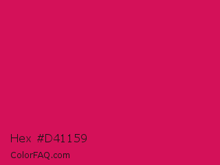 Hex #d41159 Color is a normal rose color and the nearest color is Debian Red #d70a53. Hex code #d41159 and RGB value is rgb(212,17,89). In RGB color space, this color is composed of 83% red, 7% green, 35% blue, In CMYK color space, this color is composed of 0% cyan, 92% magenta, 58% yellow , 17% black , In HSL color space, this color has a hue angle of 338° , 85% saturation and 45% lightness.