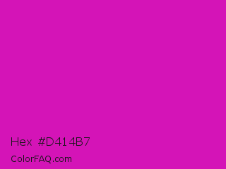 Hex #d414b7 Color is a normal magenta color and the nearest color is Deep Magenta #cc00cc. Hex code #d414b7 and RGB value is rgb(212,20,183). In RGB color space, this color is composed of 83% red, 8% green, 72% blue, In CMYK color space, this color is composed of 0% cyan, 91% magenta, 14% yellow , 17% black , In HSL color space, this color has a hue angle of 309° , 83% saturation and 45% lightness.