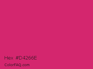 Hex #d4266e Color is a normal rose color and the nearest color is Razzmatazz #e3256b. Hex code #d4266e and RGB value is rgb(212,38,110). In RGB color space, this color is composed of 83% red, 15% green, 43% blue, In CMYK color space, this color is composed of 0% cyan, 82% magenta, 48% yellow , 17% black , In HSL color space, this color has a hue angle of 335° , 70% saturation and 49% lightness.