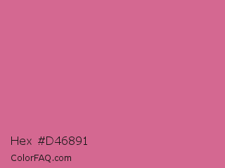 Hex #d46891 Color is a light rose color and the nearest color is Pale Red Violet #db7093. Hex code #d46891 and RGB value is rgb(212,104,145). In RGB color space, this color is composed of 83% red, 41% green, 57% blue, In CMYK color space, this color is composed of 0% cyan, 51% magenta, 32% yellow , 17% black , In HSL color space, this color has a hue angle of 337° , 56% saturation and 62% lightness.