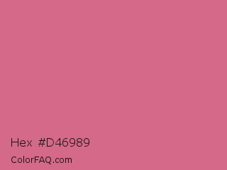 Hex #d46989 Color is a light rose color and the nearest color is Pale Red Violet #db7093. Hex code #d46989 and RGB value is rgb(212,105,137). In RGB color space, this color is composed of 83% red, 41% green, 54% blue, In CMYK color space, this color is composed of 0% cyan, 50% magenta, 35% yellow , 17% black , In HSL color space, this color has a hue angle of 342° , 55% saturation and 62% lightness.