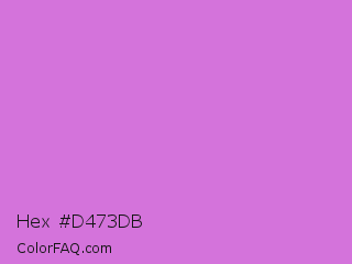 Hex #d473db Color is a light magenta color and the nearest color is French Mauve #d473d4. Hex code #d473db and RGB value is rgb(212,115,219). In RGB color space, this color is composed of 83% red, 45% green, 86% blue, In CMYK color space, this color is composed of 3% cyan, 47% magenta, 0% yellow , 14% black , In HSL color space, this color has a hue angle of 296° , 59% saturation and 65% lightness.