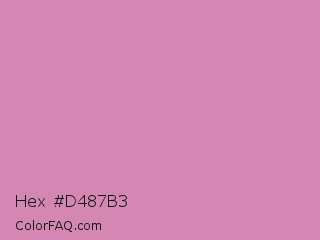 Hex #d487b3 Color is a light magenta color and the nearest color is Middle Purple #d982b5. Hex code #d487b3 and RGB value is rgb(212,135,179). In RGB color space, this color is composed of 83% red, 53% green, 70% blue, In CMYK color space, this color is composed of 0% cyan, 36% magenta, 16% yellow , 17% black , In HSL color space, this color has a hue angle of 326° , 47% saturation and 68% lightness.