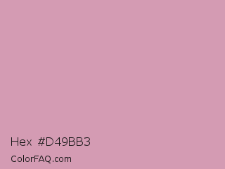 Hex #d49bb3 Color is a light rose color and the nearest color is Careys Pink #d29eaa. Hex code #d49bb3 and RGB value is rgb(212,155,179). In RGB color space, this color is composed of 83% red, 61% green, 70% blue, In CMYK color space, this color is composed of 0% cyan, 27% magenta, 16% yellow , 17% black , In HSL color space, this color has a hue angle of 335° , 40% saturation and 72% lightness.