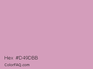 Hex #d49dbb Color is a light magenta color and the nearest color is Light Medium Orchid #d39bcb. Hex code #d49dbb and RGB value is rgb(212,157,187). In RGB color space, this color is composed of 83% red, 62% green, 73% blue, In CMYK color space, this color is composed of 0% cyan, 26% magenta, 12% yellow , 17% black , In HSL color space, this color has a hue angle of 327° , 39% saturation and 72% lightness.
